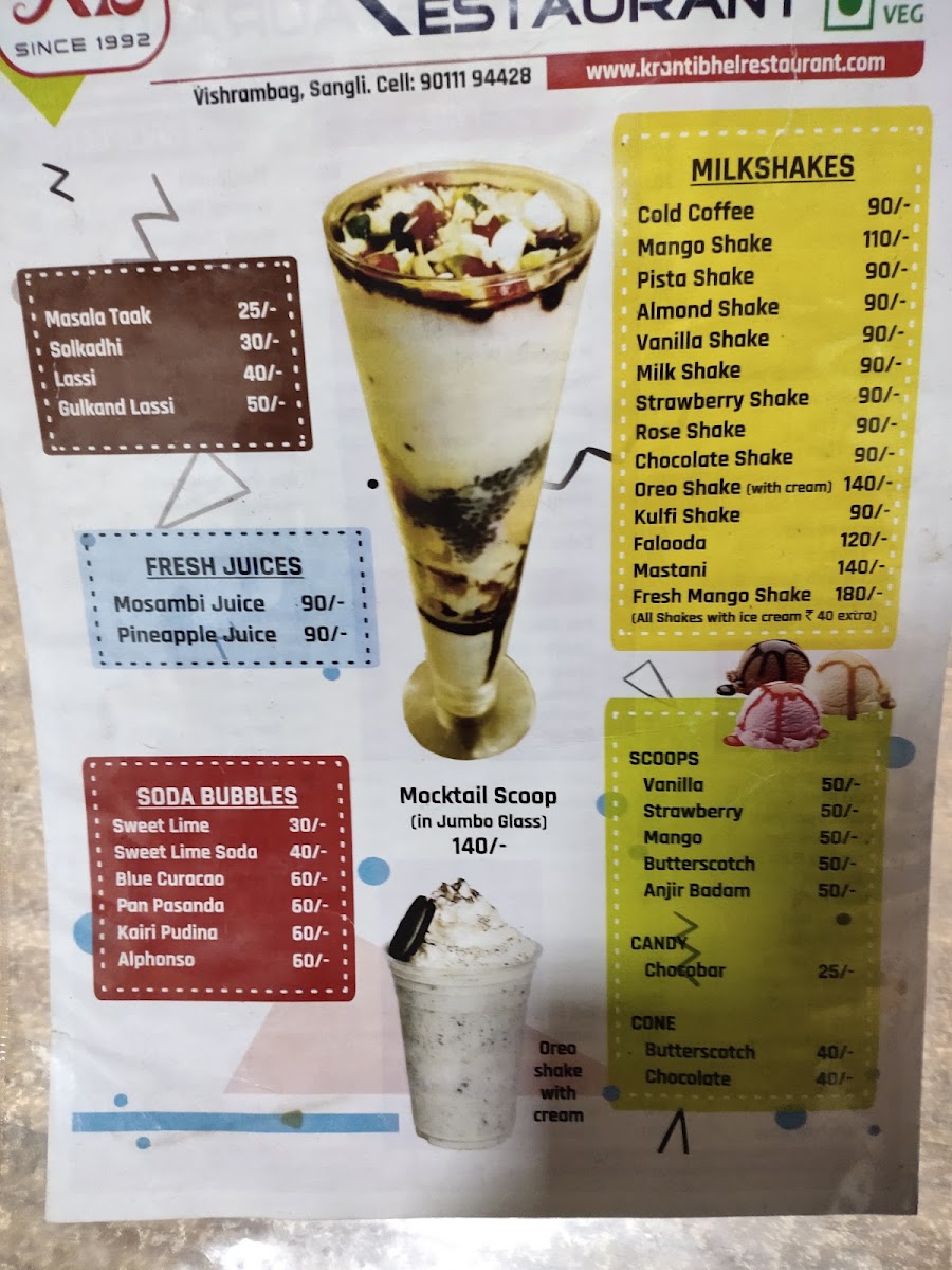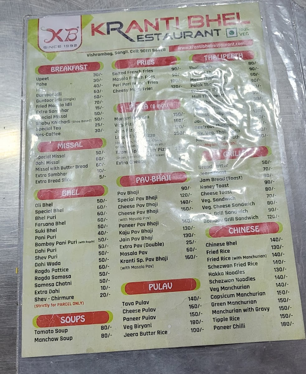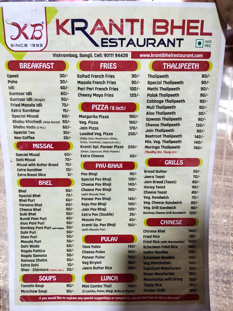 Customer reviews rave about the excellent taste and quick service, particularly highlighting the Chinese bhel and pav bhaji. Though it can get crowded during peak hours, the experience is generally rewarding, making it a must-visit for anyone in the Sangli-Miraj area. Whether you are diving into their enticing grills or enjoying a refreshing shake, Kranti Bhel Restaurant promises an unforgettable culinary journey.